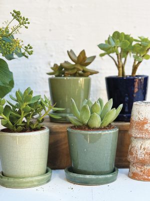 PLANT POT GREEN/BLUE CRACKLE ASTD/4 SML 10x9cm /8