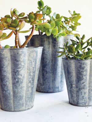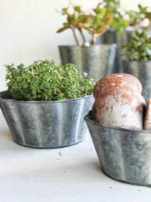 ZINC FLUTED OVAL PLANTERS SML SET OF 2 20x14x10cm /5