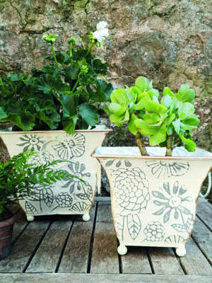 ZINC SQUARE PLANTER ORCHID ANTIQUE WHITE S/2 23x19cm /2